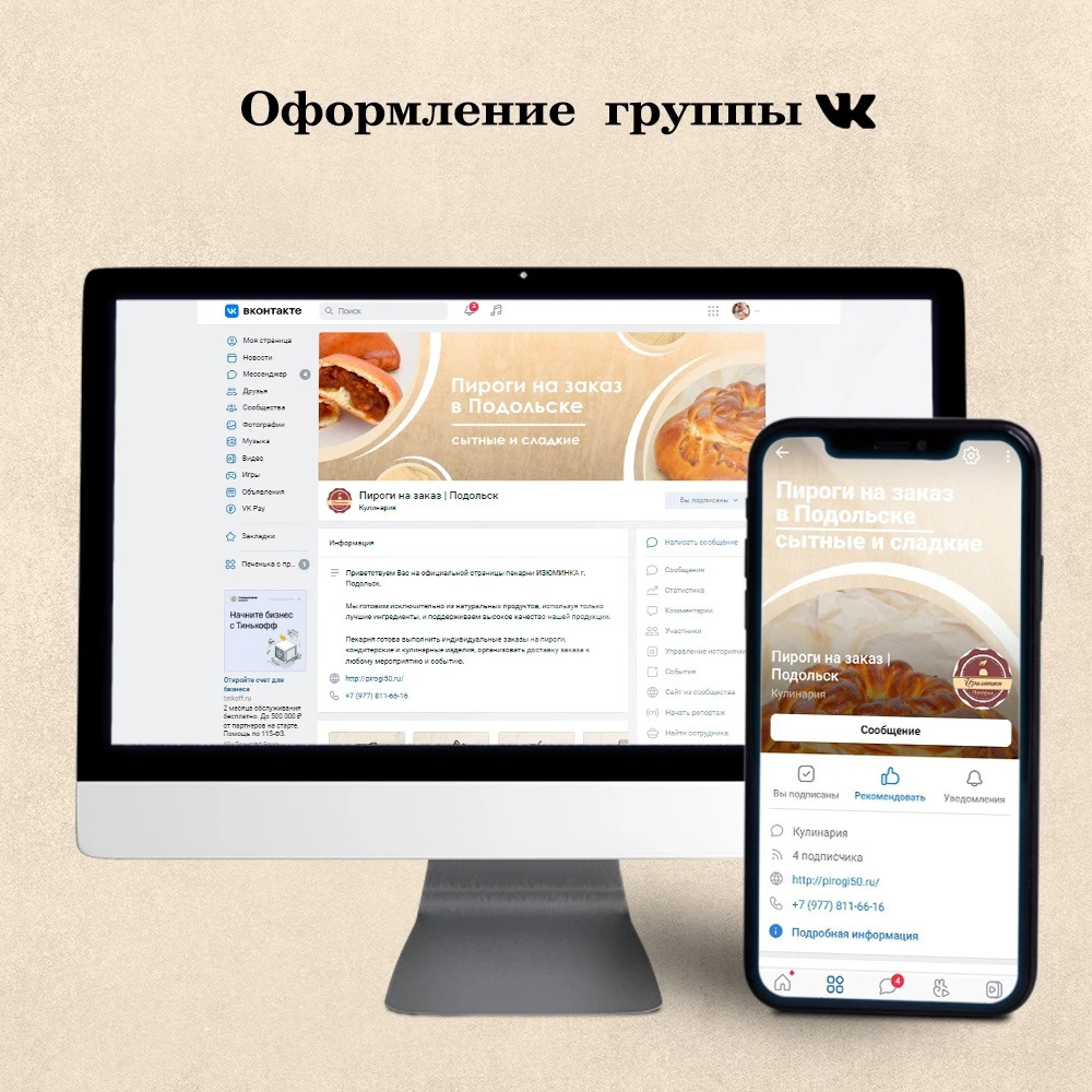 Группа должна быть оформлена с использованием обложки, которая кратко описывает название, услуги или преимущества.